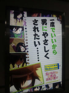 「一度でいいから男にやさしくされたい」っておもしろすぎる。どんな話なんだろう?秋葉原の駅でたくさんこんなパネルみたいなのがあって目立っていたから、かなり人気があるのかも。